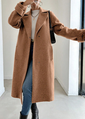 Цвет Светло-коричневый / Сезонность Демисезон / Тип Без наполнителя / Стиль Кэжуал, Деловой / Декор Без декора / Материал верха Хлопок / Бренд SHEIN / Узор Меланж / Длина изделия Длинное / Длина рукава Длинный