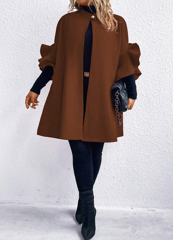 Цвет Коричневый / Сезонность Демисезон / Стиль Кэжуал / Декор Волан / Материал верха Полиэстер / Бренд SHEIN / Узор Однотонный / Длина изделия Короткое / Длина рукава Рукав 3/4 / Капюшон Без капюшона