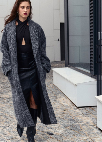 Цвет Черный / Сезонность Демисезон / Тип Без наполнителя / Стиль Кэжуал / Декор Без декора / Материал верха Полиэстер, Фетр / Бренд H&M / Узор Однотонный / Длина изделия Длинное / Длина рукава Длинный