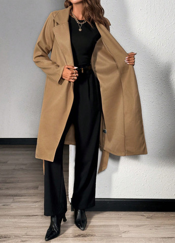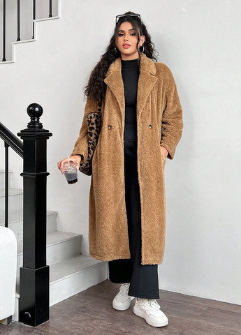 Цвет Темно-бежевый / Сезонность Зима / Стиль Кэжуал / Декор Без декора / Материал верха Полиэстер / Бренд SHEIN / Узор Однотонный / Длина изделия Длинное / Длина рукава Длинный / Капюшон Без капюшона
