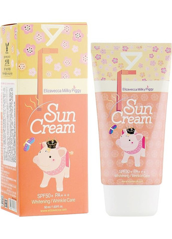 Солнцезащитный крем SPF 50+ - Elizavecca Face Care Milky Piggy Sun Cream SPF 50+ Влияние солнца на кожу часто очень губительно, если не прибегнуть к использованию специальных защитных средств. Солнцезащитный крем SPF 50 корейского бренда Elizavecca – высокоэффективное средство, способное поглощать 98% UVB-лучей. Уже после первого нанесения вы можете быть спокойными за сохранение вашего кожного покрова – вам не страшны характерные покраснения или ожоги. Кроме того, это косметическое средство способно осветлять кожу. А присутствующие в нем коллаген и растительные экстракты помогут эпидермису омолодиться и оздоровиться. Солнцезащитный крем легко наносить и распределять. С этим средством вы можете не думать о жирном блеске или наличии липкой пленки – крем прекрасно впитывается. Наносить перед выходом на улицу, как последний этап ухода за кожей. Состав Water, Ethylhexyl Methoxycinnamate, Ethylhexyl Salicylate , Cyclopentasiloxane, Titanium Dioxide, Butyloctyl Salicylate, Butylene Glycol, Cyclohexasiloxane, Ethylhexyl Methoxycrylene , Methyl , Butyl Methoxydibenzoylmethane, Triethylhexanoin, Cetyl PEG/PPG-10/1 Dimethicone, Sorbitan Sesquioleate, Ceresin, Magnesium sulfate, Triethanolamine, Betaine, Sodium Hyaluronate, Silica, Sorbitan Olivate, Disteardi Диметикон/Винил Диметикон Кроссополимер, Алантоин, Пантенол, Феноксиетонал, Hydrolyzed Collagen, Диметикон, Fragrance, PEG/PPG-19/19 Диметикон, Глицерин, Talc, Althaea Rosea Root Extract acid, Adenosine, Disodium EDTA, Propylene Carbonate, Psidium Gjava Leaf Extract, Lavandula Angustifolia (Lavender) Extract, Monarda didyma list extract, Mentha Piperita (Peppermint) (Rosemary) Leaf Extract , CI 77491, Артемия Принципы Extract, Morus Alba Leaf Extract, Vitis Vinifera (Grape) Seed Extract