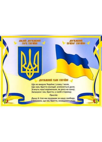 Плакат "Гимн Украины", мелованная бумага. Формат А3 (42 х 29,7 см)