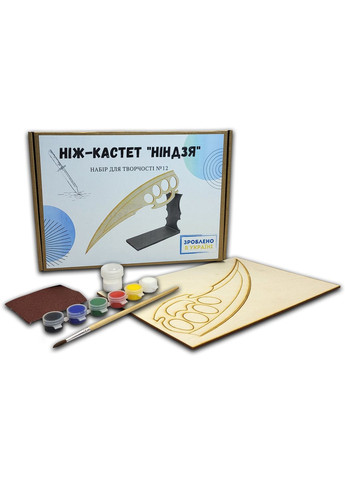 Комплектность – картонная коробка. - фанера с деталями 3-х ножей (на заготовке прорезанные контуры деталей ножа с помощью лазера для последующего выдавливания детали из заготовки) - клей - краски - кисточка для раскраски и нанесения клея - наждачная бумага - схема Магнитное крепление брелков к ножу * В характеристики, комплектацию и комплектацию. Основные характеристики набора для творчества из 3-х ножей Standoff 2 TANTO, M9, Scorpion из фанеры Страна производитель ................................... Hand Made Украина Материал ................................................ Фанера Тип ......................................................... Набор возрастной группы .......................................... От 6 лет Сложность сложения .......................... Средний Пол ....................................................... Для мальчиков Состояние ........................................................ Новый Упаковка ................................................ Да Габариты упаковки ............................... 210*300*50 мм. 1. Материал: фанера. Фанера – это прочный, долговечный и легкий материал, отлично подходящий для создания ножей. Он также доступен по цене и позволяет точно вырезать детали ножа. 2. Лазерная резка. Детали ножа были вырезаны лазером, что гарантирует точность и четкость контуров деталей. Это позволяет создавать сложные детали с высокой точностью. 3. Краски. В набор входят краски, позволяющие создать уникальный дизайн для ножа TANTO, M9, Scorpion из игры Standoff 2. Краски легко наносятся на фанеру и быстро высыхают. 4. Клей по дереву и фанере. Для склеивания деталей используется специальный клей по дереву и фанере, который обеспечивает хорошую адгезию и делает нож прочным и долговечным. 5. Наждачная бумага на тканевой основе. В набор входит качественная наждачная бумага на тканевой основе, которая позволяет зашлифовать нож перед покраской или на последнем этапе сборки, если нож не покрасится. 6. Инструкция по сборке. В наборе также есть подробная инструкция по сборке, которая поможет собрать нож без проблем даже начинающим мастерам. Нож из фанеры с магнитной крепью для смены брелков от игры "Standoff 2" имеет несколько преимуществ, которые можно выделить: Магнитный крепеж: Магнитная система крепления позволяет легко менять брелки на ножи без необходимости использовать дополнительные инструменты или навыки. Просто приложите брелок с другим дизайном к ножу, и магниты будут держать его на месте. Разнообразие дизайнов: Благодаря возможности изменять брелки, игроки могут подбирать дизайны, которые лучше всего соответствуют их стилю или настроению. Это добавляет элемент персонализации инвентаря игрока и делает игру более увлекательной. Хранение инвентаря: Вместо того чтобы хранить несколько ножей с разными брелками, игроки могут иметь один нож и несколько брелков, что занимает меньше места в инвентаре. Экономическая выгода: Вместо покупки нескольких ножей с разными дизайнами, игроки могут приобрести один нож и изменять его внешний вид с помощью разных брелков, что может оказаться экономически выгоднее. Легкость в уходе: Фанера в качестве материала для ножа достаточно легка в уходе. Она не требует специальных усилий для чистки или ухода, что может быть удобно для игроков. Уникальность: Возможность создавать свои комбинации нож-брелок придает уникальность инвентарю игрока, что может вызвать интерес у других игроков. Эксклюзивность: Если некоторые брелки ограничены по количеству или недоступны для общей покупки, игрок