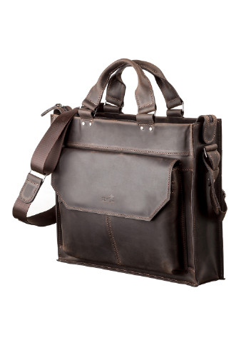 Материал: натуральная винтажная кожа; Размеры (ШхВхГ, см): 35х27х7.5; Цвет: коричневый; Страна производитель: Украина. Стильная, современная мужская сумка формата-А4, с двумя удобными ручками, для повседневного использования, позволяющая носить с собой папку с документами, личные вещи. Аксессуар выполнен из натуральной винтажной кожи, характерными признаками которой, являются: неоднородность окраса и потертости, которые придают изделию изысканного, индивидуального вида. Внутри – боковой карман на змейке, два небольших кармана для телефона, мелочей и ручек, упрочненное отделение под планшет. Также расположено большое отделение, закрывающееся пряжкой на магните. Снаружи – на задней стенке - большой карман на молнии. Подкладка выполнена из прочного материала, цвет фурнитуры: латунь, в наличии плечевой ремень. Аксессуар упакован в пылезащитный чехол.