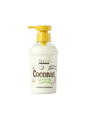 Лосьон для тела THALIA с исключительной текстурой нежного суфле буквально тает на коже! Экстракт кокоса известен своим смягчающим действием. Этот полезный компонент ощутимо повышает упругость и тонус кожи. Особая формула лосьона THALIA дополнена двумя омолаживающими компонентами: витамином Е, который интенсивно увлажняет кожу и замедляет ее старение, и пантенолом, регулирующим обменные процессы и ускоряющим синтез собственного коллагена. Продукт обеспечивает вашу кожу необходимой влагой и глубоко питает ее. Легкая консистенция лосьона быстро поглощается кожей. Не содержит парабенов, парафинов и вредных для здоровья веществ.