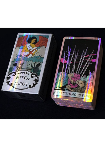 Размер карты 10,2*6 см. Таро Современной ведьмы отражает жизнь современных самостоятельных женщин. Таро пронизано духом феминизма и описывает мир, где женщины занимают ведущие роли и способны добиваться своих целей самостоятельно. Бревно построено в классическом стиле Вейта и предназначено для сильных женщин, одновременно могут проявлять мягкость, эмоциональность и погружаться в сладкие иллюзии. В общем, она являет собой привлекательный и интересный вариант для таких женщин.