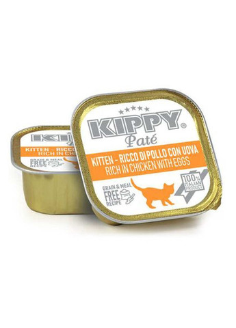 Преимущества паштета с курицей для котят Kippy Pate Kitten: Содержит 30% курятины, рыбу, молоко и яйца, обеспечивая полноценное питание. Обогащенный витамином D3, цинком, йодом, марганцем и таурином для здорового роста. Кусочки натурального мяса курицы гарантируют удовольствие от каждого приема пищи. Беззерновая формула идеально подходит для чувствительного пищеварения котят. Паштет легко усваивается и нравится даже привередливым любимцам. В нашем каталоге можно купить влажный корм для котят, который обеспечит полноценное питание и будет способствовать здоровому росту и развитию малышей. Мясо и мясные ингредиенты (из которых курятина 30%), рыба, молоко, яйца 0,5%, растительное масло и жир. Пищевые добавки на кг: Витамин D3 135 МЕ, цинк 3,3 мг, йод 0,45 мг, марганец 1,35 мг, таурин 139,5 мг. Технологические добавки: камедь кассии 1275 мг. Аналитический состав: сырой протеин 10%, сырая клетчатка 0,5%, сырой жир 7%, сырая зола 2,5%, влажная 78%. Рекомендации по кормлению: Возраст котенка Суточная норма корма 1–3 месяца 100–150 г 4–6 месяцев 180–250 г 7–12 месяцев 250–300 г Суточную норму желательно делить на 3–4 приема пищи, поскольку котята нуждаются в частых кормлениях. Консерва готова к употреблению; при подаче должна быть комнатной температуры. Всегда снабжайте любимца постоянным доступом к свежей питьевой воде. Условия хранения: хранить в упаковке изготовителя в сухих помещениях при температуре от 0С до +25С. Откройте упаковку в холодильнике и используйте в течение 48 часов (двух суток). Фасовка: 90 г, 200 г.
