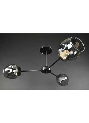 Потолочная люстра, корпус металлический. Плафоны стеклянные размером 12х13 см. Патрон Е27. Крепление к потолку на планку, основа диаметром 12 см.Потолочные люстры - это практичность, легкость и простота. Выбирайте потолочную люстру по размеру и количеству плафонов, такую, которая лучше всего подойдет к размеру и стилю именно вашего помещения. Потолочную люстру купить можно и в гостиную, и в спальню, и в кабинет, на кухню или прихожую.Высота люстры, см: 30Ширина люстры, см: 67Диаметр/длина, см: 67Материал плафона: СтеклоМатериал корпуса: МеталлЦвет плафона: Прозрачный серыйЦвет корпуса: ЧерныйКоличество источников света: 3Мощность, Вт (макс): 60Тип патрона: E27Пульт д/у: НетНочная подсветка: НетПроизводитель: Китай