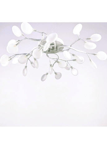 Потолочная люстра с плафонами-лепестками на 28 лампах в металлическом корпусе белого, черного или золотистого Цвета с белыми матовыми плафонами