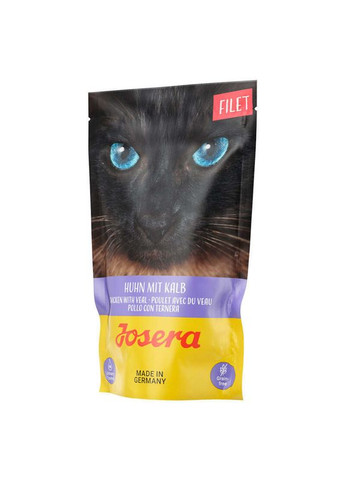 Если же ваш пушистый дружок обладает чувствительным пищеварением и страдает от проявлений аллергии — смело давайте ему этот продукт. Заказывайте он-лайн, чтобы побыстрее получить влажный корм Йозера с курочкой и говяжьим мясом, ведь в нем абсолютно нет злаков, сои, молочных продуктов и искусственных пищевых добавок, способных спровоцировать аллергическую реакцию организма! Консервы насыщают питомца белками, жирами, витаминами, минералами и другими необходимыми для здоровья полезными веществами. Высокое содержание мяса и субпродуктов в составе. Влажный рацион Йозера является также дополнительным источником получения влаги для котов, которые отказываются пить воду в достаточном количестве. Особенности и преимущества : подходит котам с чувствительным пищеварением; не содержит зерновых культур, глютена, сои, молочных продуктов, сахаров, пальмового масла; без содержания искусственных добавок: консервантов, ароматизаторов, красителей; содержит маленькие, сытные и сочные кусочки натурального мяса; профилактика заболеваний мочевыводящих путей; можно смешивать с сухим кормом; куриное филе ценно содержанием незаменимых аминокислот, витаминов А, РР, группы В, минералов: серы, фтора, калия, кальция, магния, натрия, йода, меди, цинка, фосфора и др.; субпродукты (говяжьи легкие и сердца) насыщают витаминами группы В, железом, которые улучшают работу сердца, качество крови, укрепляют иммунитет; герметичная упаковка отлично сохраняет все полезные свойства продукта. Состав : куриное филе 40,0%; куриный бульон 39,0%; говядина (состоит из сердец и легких) 10,0 %; куриная печень; куриный жир; минералы. Аналитические составляющие в 1 кг : протеин 14,5%; жир 5,5%; сырая клетчатка 0,2%; сырая зола 2,3%; влажность 76,0%. Добавки : Пищевые добавки в 1 кг: 200 М.А. Витамин D3; 20 мг Витамин E; 1.500 мг Таурин; 25,0 мг Цинк (сульфат цинка, моногидрат); 1,40 мг Марганец (Марганец (II) сульфат, моногидрат); 1,00 мг Медь (Медь (II) сульфат, пентагидрат); 0,75 мг Йод (Кальция йодат, безводный). Рекомендованные нормы кормления : Вес кошки Суточная норма корма, паучей/сутки 2-3 кг 2-2,5 шт. 3-4 кг 2,5-3 шт. 4-5 кг 3,5-4 шт. 5-7 кг 4-4,5 шт. * Рекомендованное дневное количество корма: смотрите на упаковке. Количество потребляемого корма также должно соотносится с индивидуальным уровнем активности вашего питомца. У животного всегда должен быть доступ к чистой, питьевой воде. Условия хранения : после вскрытия хранить в холодильнике при температуре 2-6 °C и использовать в течение 24 часов. Фасовка : 70 г