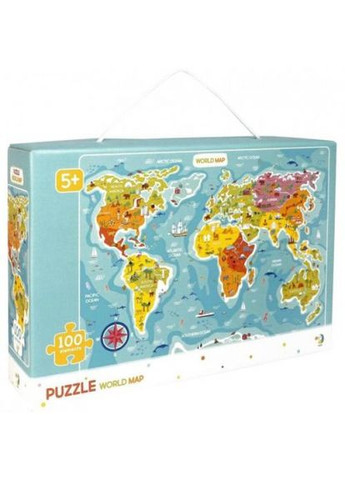 Яркие пазлы "Карта мира" на 100 элементов. Развивают логическое мышление, мелкую моторику рук, усидчивость._ Пазлы большие и удобные. Размер детали: 6,5 х 4,5 см. Размер готовой картинки: 46 х 64 см. Английский язык.