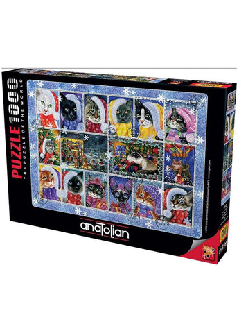 Пазл состоит из 1000 деталей, "Рождественский кот". После сборки будет создано изображение размером 660x480 мм. Anatolian Puzzle – это веселая деятельность, которой можно заниматься в одиночку или в группе. Это отличный подарок для всех возрастов на дни рождения, праздники и особые события. Благодаря входящей в комплект картонной подставке вы можете разместить крышку визуальной коробки вертикально/горизонтально. Яркие цветные изображения, наклеенные на плотный специальный голубой картон для пазлов, вырезаны специальным инструментом для вырубки ручной работы. Благодаря высококачественным материалам и технологиям, используемым в производстве продукции, изделия имеют антибликовую поверхность.