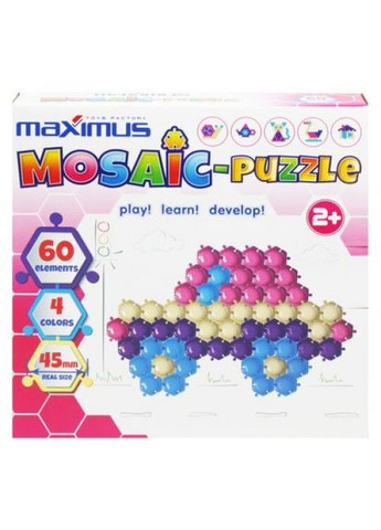 Пазл мозаики состоит из 60 ярких пластиковых деталей 4 цветов, которые можно соединять между собой. Размер одной детали: 45 мм. Также в наборе есть книга-подсказка. Игра с мозаикой развивает мышление, воображение и мелкую моторику. Набор изготовлен из качественных и безопасных материалов. В комплекте большие детали, подходят для детей от 2 лет.