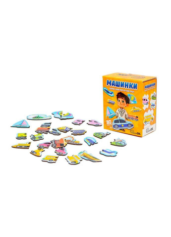 На одной из страниц малыш попадет в гараж, где его ждут машина и инструменты. Изучая их названия и рассматривая контуры, ребенок сможет найти и прикрепить каждый предмет на свое место, расширяя словарный запас и развивая мелкую моторику.