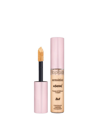 Консилер для лица topface Sensitive Mineral 3-IN-1 Concealer РТ471 Специально разработанная формула консилера topface с комплексом витаминов, минералов и пребиотиков, минимизирует появление морщин, способствует увлажнению кожи, обладает высокой кроющей способностью, выравнивает и корректирует тон кожи. Легко наносится специальным аппликатором. Может использоваться в качестве консилера, тонального крема либо средства для контуринга. Подходит для сухой и чувствительной кожи. Не тестируется на животных. Не содержит продуктов животного происхождения. Минеральный консилер является незаменимым помощником при создании идеального макияжа. Воздушная кремовая текстура легко ложится на кожу, скрывая пигментные пятна, покраснения, мелкие морщинки, темные круги под глазами и другие недостатки, Удобная кисточка на конце консилера сделает процесс нанесения средства быстрым и комфортным, Натуральный состав не только заботится о здоровье кожи, но и оберегает ее, Касторовое масло питает и увлажняет кожу. Шесть оттенков бежевого помогут подобрать нужный цвет для вашей кожи. Объем: 12 мл
