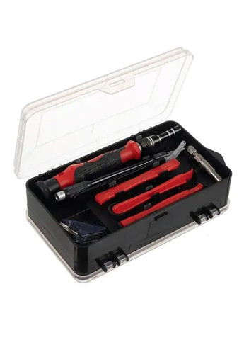 Такой набор идеально подходит для каждого настоящего энтузиаста или мастера своими руками. Фантастический и практичный продукт, который непременно ускорит и облегчит различные технические работы, требующие разборки и сборки мелких предметов. Изделие обязательно оценят частные лица, как для домашнего использования, так и профессиональные ремонтники. Набор можно использовать в любом гараже, мастерской или ферме. Характеристики: - Материал: хромованадиевая сталь CrV - Количество элементов в наборе: 110 шт - Размеры (ДхШхВ): 18х11х5 см - Вес: 0,47 кг - Вес с упаковкой: 0,52 кг Комплектация: - Отвертка БАЗА с нескользящей резиновой ручкой с покрытием. - Резиновый удлинитель - Пинцеты - Намагничиватель/размагничиватель - Присоска для демонтажа окон/стекла - Контакт для извлечения SIM-карт (microSIM, nanoSIM) - 3 угловых открывалки для кейсов (широкая, узкая, длинная) - 5 разных открывателей кейсов - Переходник/адаптер для отвертки или дрели - Т-2; Т-2; Т-3; Т-3; Т-4; Т-4; Т-5; Т-5; ✪0,8; ✪0,8 - ✪ 1,2; ✪1,2; Y0,6; Y0,6; PH0000; PH0000; PH000; PH000; РН00; PH00 - РН0; РН0; РН1; РН1; РН2; РН2; РН2.6; РН2.6; РН3.0; PH3.0 - Плоская отвертка: 1,3; 1,5; 2,0; 2,0; 2,5; 2,5; 3,0; звездочка: P20000; плоская: 3,5; Т25Х - У: 8; плоские: 4; Т-1; Т-6; Т-7; Т-8; Т-9; Т-10; Т-15; Т-20 - Т6Н; Т7Х; Т8Х; Т9Н; Т10Х; Т15Х; Т20Х; Y2.0; Y2,5; Y3.0 - Н0,7; Н0,9; Н1.3; Н1,5; Н2.0; Н2,5; Н3.0; Н3,5; Н4.0; Н4.5 - Н5; Н6; треугольник: 2,0; 2,3; 2,6; 3,0; Р00; Р0; П1; П2 - Плоские: 1; торц: 1,5; 2,0; 2,0; 2,5; квадрат: 0; 1; 2; раунд: 0,8; 1.0 - РН2; насадки: 2,5; 3,0; 3,5; 4; 4,5; 5,0; 5.5.