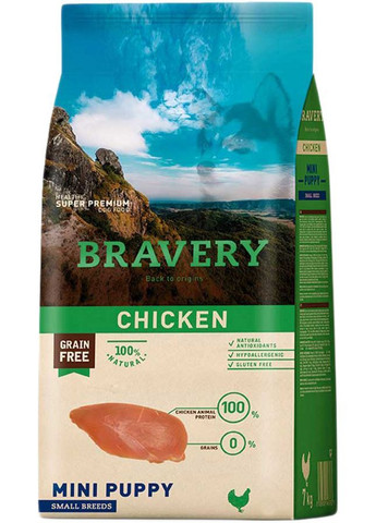 BRAVERY PUPPY Chicken - полноценный сухой корм для щенков средних и крупных пород, рецепт с курицей, беззерновой.