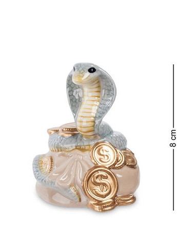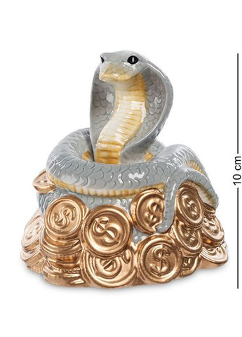 Фигурка фарфоровая Pavone Кобра на монетах 10 см 1104685 серая змея Размеры изделия Длина: 10 см; Ширина: 10.5 см; Высота: 10 см; Вес: 0.25 кг. Фигурка "Кобра на монетах" Согласно правилам китайского учения Фен-Шуй, змея символизирует богатство и достаток. К счастью, для того чтобы привлечь материальные блага в свою жизнь, не нужно обзаводиться опасным домашним питомцем. Достаточно всего лишь приобрести красивую статуэтку или фигурку змеи, и образ этого величественного животного станет талисманом для вашего семейного бюджета. Фигурка «Кобра на монетах», изготовленная из фарфора, как нельзя лучше подходит на роль хранителя вашего благосостояния. Фигурка выполнена в виде грациозной кобры, которая скрутилась «колечком», пряча под хвостом мешок с золотыми монетами. Изделие расписано яркими перламутровыми красками, благодаря чему оно выглядит очень выразительно и стильно.