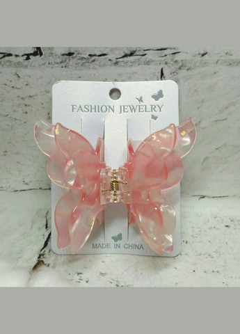 Заколка крабик для волос Бабочка перламутровая розовая 67х59мм