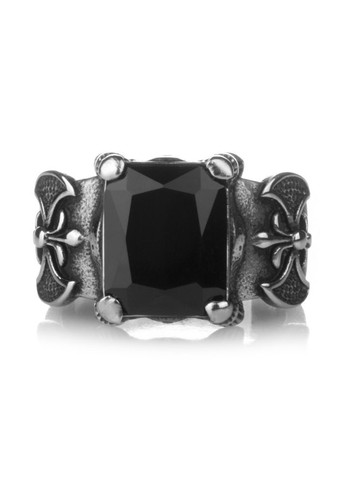 Благородное кольцо Украинского бренда WellDone из ювелирной стали 316L с винтажной резьбой и прямоугольным фианитом насыщенного черного цвета. Ширина: 14 мм.