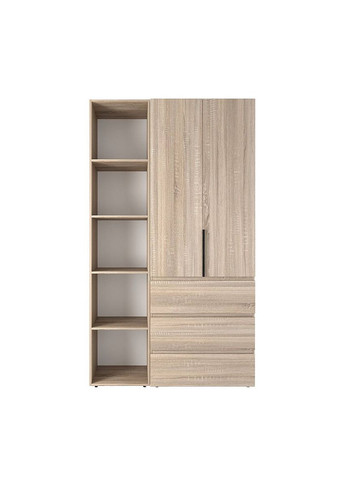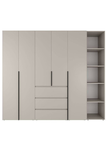 Четырехдверный распашный шкаф с одной штангой и восемью полками – стиль и практичность в каждой детали Четырехдверный распашный шкаф – это современное решение для гардеробной, спальни или прихожей, сочетающее вместительность, удобство и лаконичный дизайн. Благодаря продуманному внутреннему наполнению – одной штанге для одежды на вешалках и восьми полкам для сложенных вещей – шкаф обеспечивает идеальный порядок в хранении всех вещей. Модель изготовлена из высококачественного ламинированного ДСП, что гарантирует долговечность и устойчивость к ежедневному использованию. Черная кромка и металлические ручки придают стильный контраст, а аккуратные линии дизайна гармонично вписываются в современный интерьер. Размеры 1969x2100x570 мм обеспечивают емкость без потери компактности, поэтому шкаф одинаково хорошо подходит как для гардеробной, так и для комнаты среднего размера. Особенности: 4 распашные дверцы для удобного доступа штанга для одежды 8 полок для вещей, белья или коробок черные металлические ручки в современном стиле черная кромка, подчеркивающая геометрию формы петли с доводчиком для плавного закрывания телескопические направляющие для установки антресоли и выдвижных ящиков для расширения функционала Практичность и функциональность: Этот шкаф – идеальный выбор для тех, кто стремится соединить порядок, удобство и стиль. Она обеспечивает продуманное расположение всех типов вещей – от длинных пальто до постельного белья или обуви. Благодаря современному дизайну и универсальным цветам, модель легко комбинируется с другой мебелью в доме. Технические характеристики: Тип: четырехдверный распашный шкаф Материал: ламинированное ДСП Размеры: ширина – 1969 мм, высота – 2100 мм, глубина – 570 мм Комплектация: штанга, 8 полок, возможность установки антресоли и выдвижных ящиков Ручки: металлические черный с доводчиком Направляющие: телескопические Назначение: для гардеробной, спальни, прихожей