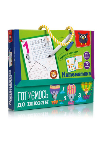 Игра с карточками Готовимся к школе Подготовка к школе еще не была такой увлекательной. Знакомиться с математикой легко! Ребенок обводит цифры по контурам и запоминает их, а впоследствии учится писать самостоятельно, уже без подсказок. В комплекте есть интересные задачи, которые вы можете выполнить вместе. Главное — не бояться ошибаться, ведь ребенок всегда может сотереть маркер и попробовать снова. Особенности: Многократный маркер можно стирать и возвращаться к написанию цифр или выполнению интересных задач, чтобы закрепить пройденный материал. Тренируем: внимание, интеллект, память, логическое мышление. Учим цифры. Интересные и разнообразные упражнения для развития в руководстве от Академии развития Набор содержит: 20 двусторонних карт, 70 заданий, маркер. Возраст: 4-6 лет. Отправим по всей Украине оптом и в розницу