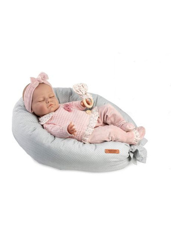 Надежная и реалистичная спящая кукла-младенца, олицетворяющая нежность и заботу. Мягкие виниловые конечности с наполнением из волокна и кварцевого песка придают приятной тяжести кукле, обладающую релаксирующим эффектом. Красивый костюм и удачно подобранные цвета еще больше привлекают внимание к игрушке и никого не оставят равнодушным. Размер 55 см и вес 1,7 кг создают настоящий опыт ухода, а аксессуары – подушка-кокон, игрушка-грызунок и подгузник – придают функциональность и разнообразие игре. Характеристики: Размер: 55 см; Вес: 1,7 кг; Возраст: от 3 лет.