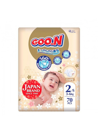 Подгузники Goo.N Premium Soft – новые инновационные подгузники премиального сегмента, изготовленные по японским технологиям. Goo.N Premium Soft – это уникальное сочетание японских технологий и предпочтений европейских родителей. Изготовлен из мягких материалов, подгузник имеет классическую европейскую конструкцию с эластичным пояском и липучками. Подгузник дышит на 360 градусов. Воздушные поры на поясе, дыхательная мембрана и внутренний рельефный слой делают подгузник полностью воздухопроницаемым и обеспечивают максимальный комфорт для кожи малышей. Лучшие уборные свойства в линейке Goo.N! Мощный впитывающий слой и инновационная система каналов внутри подгузника обеспечивают равномерное распределение влаги и мгновенное поглощение. Подгузники Goo.N Premium Soft впитывают и удерживают влагу в любом положении малыша денно и нощно. Рельефный внутренний слой обеспечивает воздухопроницаемость внутри подгузника и уменьшает время контакта кожи малыша с влагой, защищая от раздражений. Двойные оборочки и мягкие манжетики, эластичные липучки и пояс обеспечивают комфортную посадку, идеальное прилегание и максимальную защиту от протечек. Индикатор наполнения сигнализирует о времени смены подгузника. Размер S для малышей весом 3–6 кг (kg). В упаковке 70 шт.