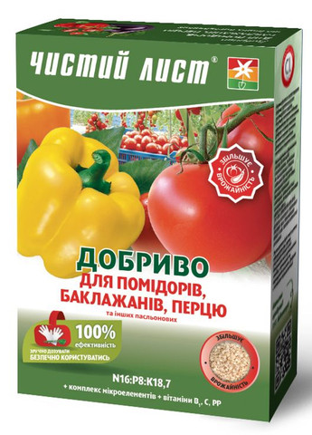 Эффективное и простое удобрение для помидоров, баклажанов, перца и других пасленовыхувеличит урожайность и качество овощной продукции,улучшит вкусовые показатели,стимулирует быстрый и пропорциональный рост. Основное внесениеОсенью (перед вспашкой) 9 мерных ложек ( 50 г) смешать с 1-2 литрами сухого песка или почвы. Полученную смесь равномерно распределить на 1 м2 грядки.Весной (при посадке) 14 мерных ложек (80 г) растворить в 9 литрах воды. Поливать по 0.5 литра полученного раствора под куст.Подпитки (для рассады, в период плодоношения)Корневая подкормка 2-3 мерные ложки растворить в 5-10 литрах воды. Поливать под куст каждые 15-16 дней.Внекорневая подкормка 1-2 мерной ложки растворить в 9 литрах воды. Опрыскать листья вечером, избегая солнечных лучей.