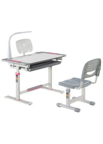 Лампа и подставка для книг в комплекте! Эргономичный, компактный, регулируемый по высоте комплект ученической мебели. Поверхность учебного стола FunDesk Littonia Pink можно наклонять до 30° для удобного письма, чтения и рисования. Присутствует пенал на рабочей поверхности для канцелярских предметов. Под столешницей расположена выдвижная полка, что обеспечивает достаточно места для хранения книг и канцелярских принадлежностей. Стул FunDesk имеет перфорацию для обеспечения циркуляции воздуха к телу ребенка, что особенно актуально в летнее время. Наличие многоступенчатого механизма регулировки высоты позволяет комплекту «расти» вместе с вашим ребенком, способствует формированию правильной осанки благодаря ортопедическим опциям. Характеристики: Регулируемые по высоте стол и стул Способствует хорошей осанке и здоровому зрению Вместительный ящик для хранения книг и тетрадей Столешницу можно наклонить до 30° градусов Специально разработанный вырез позволяет правильно располагаться за столом, и комфортно располагать локти при письме и рисовании Решетчатый дизайн стула для оптимальной вентиляции Присутствует пенал на рабочей поверхности для канцелярских предметов На ножке парты размещен крючок для портфеля Рекомендуемый возраст от 3х лет Предназначена для детей ростом от 110 до 170 см Спецификация Материал: Сталь, ABS пластик, полипропилен, ДСП класса E0 Размеры парты 800x505x547~727мм Размеры столешницы 800х505мм Размер наклонной части 800x505 мм Диапазон наклона рабочего стола 0°~30° Механизм наклона рабочего стола Пневматический рычаг Диапазон высоты стола 547 ~ 727 мм Комплектация: Стол ― 1шт Стул ― 1шт Лампа Подставка для книг