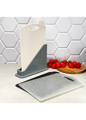 Комплект из трёх кухонных досок с компактной подставкой помогает поддерживать порядок и разделять продукты по категориям. Плотный пластик бережно относится к ножам и не впитывает запахи. «Ушки»-ручки удобны для швидкого извлечения та переноса. Размер рабочей части 23,5×20 см (высота с ушком 32,3 см) — оптимален для ежедневной нарезки мяса, овощей, хлеба. Доски можно мыть в посудомоечной машине, а стойка аккуратно размещается на столешнице. Характеристики Количество: 3 доски + подставка Материал: пластик Размер одной доски: 23,5 × 20 см Высота с «ушком»: 32,3 см Можно мыть в посудомоечной машине: да Страна производства: Китай Бренд: Winx