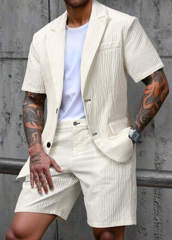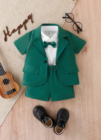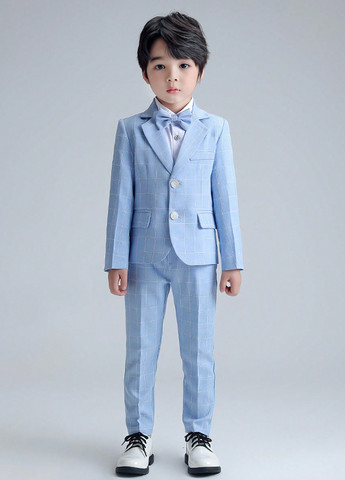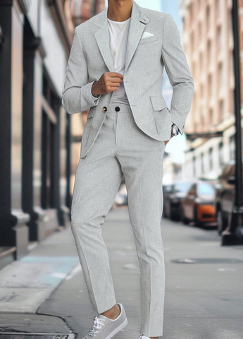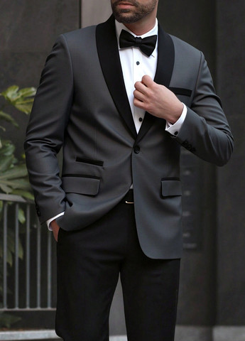 Короткое платье покрою как пиджак. Имеет зубчатые лацканы и переднюю застежку на пуговицу, две скрытые кнопки с одной стороны и скрытая кнопка с другой.