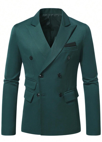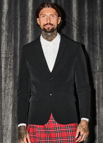 Фальшивый нагрудный прорезной карман, передние прорезные карманы с клапаном, подплечники и длинные рукава с декоративными пуговицами. На подкладке.