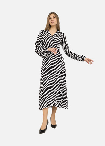 Платье на запах женское - это не просто одежда, а воплощение женственности и элегантности. Изготовленное из легкой, костюмной ткани, которая обеспечивает комфорт и подчеркивает силуэт, это платье идеально подходит как для ежедневной носки, так и для особых случаев. Дизайн платья характеризуется классическим запахом, что позволяет регулировать глубину декольте, делая его универсальным для различных типов фигуры и вкусов. Благодаря своему стилю, платье легко сочетается с различными элементами гардероба, будь то пиджак для офиса или жакет для вечера, обеспечивая комфорт и великолепный вид. Запаховой крой добавляет утонченного силуэта, а длина миди обеспечивает элегантность и универсальность. Это платье станет не только прекрасным дополнением к вашему гардеробу, но и позволит вам чувствовать себя уверенно, элегантно и женственно в любой ситуации. Особенности изделия: Цвет: черный, с декоративным узором. Материал изготовления: штапель. Состав: 80% хлопок, 20% вискоза. Крой: подчеркивает талию. Длина: миди. Платье имеет длинный рукав. Размерный ряд: XS - ХL. Сезон: демисезонный. Параметры модели: Рост: 170 см. Размер на модели: М / украинский размер: 46. Страна производитель: Украина.