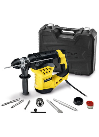 Перфоратор сетевой Trotec PRDS 11-230V сертифицирован в Украине и имеет сертификат соответствия действующим стандартам качества и безопасности. Профессиональный сетевой перфоратор Trotec PRDS 11-230V со значительным запасом мощности, ударной силой 6 Джоулов, крепкой алюминиевой головкой редуктора и пневматическим ударным механизмом является идеальным решением для высокопроизводительного регулярного использования при ремонте или строительстве. Не важно, вам необходимо просверлить небольшое отверстие в деликатных материалах, проштробить бороздку под проводку, сбить со стен старую плитку, сделать широкое отверстие в бетоне и граните или разрушить кирпичную кладку - перфоратор Trotec PRDS 11-230V легко решит эти задачи. Система гашения вибрации в основной рукоятке, антивибрационная резиновая вставка боковой рукоятки и идеальный баланс веса благодаря вертикальному размещению двигателя позволяют работать без устали длительное время, потому что отличная эргономика вибрирует в душе, а не в руках. Перфоратор не только позволяет плавно изменять скорость вращения и частоту ударов, но и фиксировать их постоянно на требуемом уровне, таким образом подбирая необходимое постоянное усилие для каждого конкретного материала. Дополнительный сверлильный патрон, поставляемый в комплекте, позволяет использовать сверла с гладким цилиндрическим конечником. Также практичным аксессуаром для всех операций сверления и бурения является встроенный ограничитель глубины, который не только позволяет придерживаться заданной глубины сверления и делать несколько отверстий одинаковой глубины, но также помогает профессионалам сэкономить деньги: если бы, например, было просверлено 500 отверстий под дюбеля мм глубже, чем необходимо, это бы привело к ненужному износа и ранней замены сверла так же, будто вы сверлили лишних 3 метра материала. Технические характеристики Номинальное напряжение: 230В Максимальная скорость вращения, об/мин: 800; Частота ударов: 4000 уд/мин Сила удара: 6.0 Дж Мощность: 1600 Вт Тип патрона: SDS-plus / зубчато-винцовый Максимальный диаметр сверления древесины: 40 мм Максимальный диаметр сверления стали: 13 мм Максимальный диаметр сверления кладка/цель : Yellow/Black (желтый/черный); Функциональные особенности: 3 режима (сверление/ударное сверление/долбление); Возвратный переключатель режимов с защитным замком; Отдельное положение переключателя для поворота и установки плоского зубила под требуемым углом; Отдельный переключатель для включения/отключения режима долбления; Плавная электронная регулировка скорости вращения и частоты ударов; Бесщеточный двигатель; Пневматический ударный механизм; Поддержка постоянных оборотов и частоты ударов на любом требуемом уровне; Антивибрационная система; Быстрое изменение инструментов благодаря патрону SDS-plus; Пылезащитный колпачок из резины, установленный на патроне; Ручка с противоскользящими резиновыми вставками; Боковая рукоятка, которая может устанавливаться под любым углом и имеет антивибрационную резиновую вставку; Питание: Сеть переменного тока: 230В, 50 Гц, 1600 Вт; Длина кабеля: 3 м Комплектация: Перфоратор сетевой – 1 шт; Дополнительная рукоятка – 1 шт; Антивибрационная резиновая подкладка на рукоятку – 1 шт; Патрон сверлильный зубчато-венцовый 1/2-20UNF, 1.5-13 мм, с концевиком SDS-plus – 1 шт; Ключ к зубчато-венцовому патро