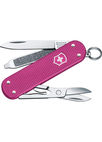 Серия малых швейцарских ножей VICTORINOX включает в себя миниатюрные модели (58 мм), которые можно использовать как брелок для ключей, что делает их полезными и удобными в повседневной жизни. Большинство ножей из этой серии снабжены ножницами и маникюрной пилкой, что позволяет использовать их в качестве дорожного маникюрного набора. Ножи-брелоки VICTORINOX имеют широкую цветовую гамму и отлично подойдут прекрасным аксессуаром как для мужчин, так и для женщин и детей. Кроме классических, модели имеют варианты накладок с национальной символикой, созданные в поддержку Украины. Модель Classic SD - это один из самых маленьких швейцарских ножей-брелоков от известной компании Victorinox. Габариты в сложенном виде составляют 58 мм, что позволяет разместить нож в кармане или подвесить на ключи. Несмотря на небольшой размер, модель получила клинок из нержавеющей стали, который не уступает функциональностью более габаритным собратьям. Ножницы и пилка для ногтей всегда поможет поддерживать в безупречном виде ваши ногти. К тому же кончик пилки можно использовать как плоскую отвертку. Пинцет и зубочистка прячутся в рукоятке ножа и в нужное время могут пригодиться. Кольцо на торце позволяет подвесить нож вместе с ключами, или прикрепить к нему темляк. Подсерия Alox с алюминиевыми рукоятками поставляется без пинцета и пластиковой зубочистки. Набор инструментов, входящих в многоцелевой нож Victorinox Classic SD: - Лезвие; - Ножницы; - Пилка для ногтей с плоской отверткой 2,5 мм; - Кольцо для подвеса; Кольцо для подвеса; - Пинцет (только в моделях с пластиковыми накладками); - Зубочистка (только в моделях с пластиковыми накладками);