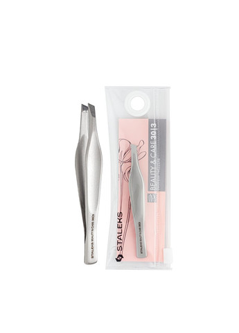 Пинцеты для коррекции бровей Staleks Beauty & Care скошенные Пинцеты помогут с легкостью подкорректировать форму бровей, потратив, при этом, минимум времени и усилий. Инструмент отличается высоким качеством рабочих кромок, надежное смыкание которых обеспечивает плотный захват даже самых коротких волосков и полное их удаление, без риска обламывания. Пинцет для бровей позволяет деликатно и точно избавиться от ненужных волосков. Эта модель оснащена широкими скошенными рабочими кромками, которые отлично увлекают и эффективно удаляют волоски любой толщины с корнем. Небольшой скос рабочих кромок обеспечивает удобное положение руки при корректировке бровей. Инструмент выполнен из высококачественной нержавеющей стали. Благодаря оптимальной толщине рабочей поверхности его стороны не прогибаются. Специальная ручная заточка изделия продлевает срок службы на более длительный период. Дезинфицировать аксессуары можно любыми средствами и способами. Ключевые особенности скошенной кромки; захват волос любой толщины, благодаря тонким кромкам; снижение риска обламывания волос, за счет плотного смыкания рабочих плоскостей; уменьшение покраснения после процедуры, благодаря полированной внешней стороне рабочей части, не травмирующей кожу; ручная заточка рабочих кромок; стильный лаконичный дизайн; приятная на ощупь матовая поверхность; медицинская нержавеющая сталь. Осторожно потяните волосок в направлении роста, удерживая кончики пинцета как можно ближе к корню волосяного стержня. Длина пинцета: 9.6 см. Ширина кромок: 0.4 см. Форма кромок: скошенная.