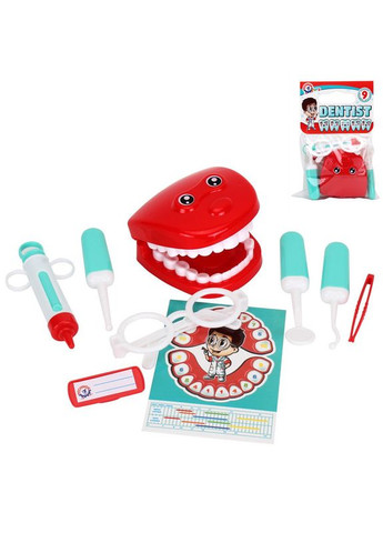 В наборе есть все необходимые инструменты, чтобы провести обзор и пролечить зубки любимым игрушкам: бурь, зеркало, зонд, шприц, термометр и пинцет. Модель челюсти поможет лучше рассмотреть зубки. Надев очки и бейджик, малыш почувствует себя настоящим стоматологом. А соблюдать все правила гигиены в "стоматологическом кабинете" поможет специальная защитная маска.