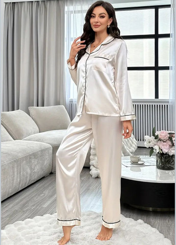 Шелковая женская пижама с кантом. Изготовлена ​​из шелка Армани высокого качества, обеспечивает идеальный комфорт и долговечность. Трендовый оверсайз крой – свободная рубашка с карманом и брюки с высокой посадкой.