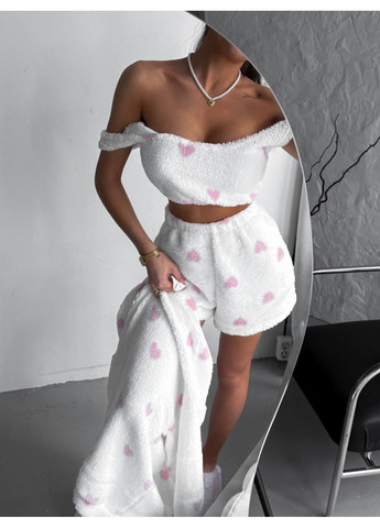 Внимание, найдена самая милая пижамка этого сезона! Тепленькая, нежная и невероятно уютная женская махровая пижама-тройка создана, чтобы дарить комфорт и хорошее настроение даже в самые холодные вечера 💖 Ткань – турецкая махра с принтом в виде розовых сердечек. Материал очень мягкий, приятный к телу, не вызывает раздражений и отлично держит форму после стирки. ✨ В комплект входит: - короткий топ с широкими бретелями - удобные шортики на эластичной резинке — халатик с рукавами и свободным фасоном Пижама не только теплая и комфортная, но и выглядит очень мило ❤️ Идеально подходит для дома, отдыха или как подарок себе или близкому человеку.