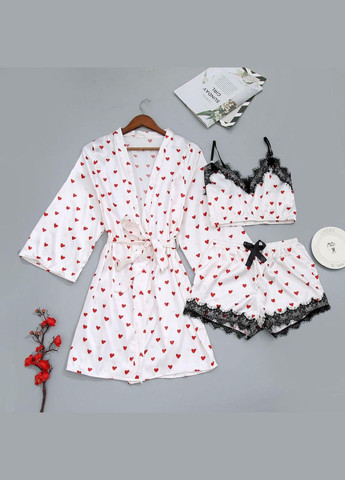 Роскошный атласный комплект для настоящих ценительниц комфорта и красоты. Халат, топ и шортики создают идеальное сочетание для домашнего отдыха. Изящное кружево добавляет утонченности, а милый принт в сердечки подчеркивает романтичный стиль.