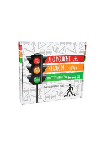 «Дорожные знаки» – игра для детей от 6 лет, предусматривающая изучение основных дорожных знаков, с которыми пешеход может столкнуться в жизни. К примеру: «Пешеходный переход», «Дорожка для велосипедистов», «Остановка автобуса» и т.д. В комплекте «Дорожные знаки» Strateg (30245) есть большое поле, по которому игрокам нужно перемещать свои фишки, и кубик, а цель игры – дойти до финиша, соблюдая правила дорожного движения. Также в комплекте 55 карточек с вопросами и вариантами ответа, с помощью которых дети постепенно запоминают важную информацию. ♦ Рекомендуемый возраст: 6+ ♦ Комплектация игры: коробка размером 33х5,6х29см,55 карточек с вопросами, планшетка с ответами, 4 фишки, планшетка-подсказка со знаками, кубик, поле, инструкция. ♦ Материал: картон. ♦ Вес игры в коробке: 800 г (+-50 г) ♦ Количество игроков: 2-4. Игра на украинском языке.