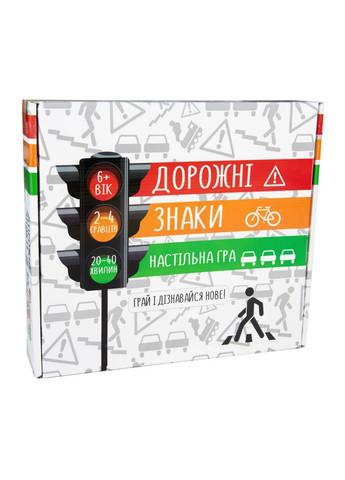 Описание: «Дорожные знаки» – игра для детей от 6 лет, предусматривающая изучение основных дорожных знаков, с которыми пешеход может столкнуться в жизни. К примеру: «Пешеходный переход», «Дорожка для велосипедистов», «Остановка автобуса» и т.д. В комплекте «Дорожные знаки» Strateg (30245) есть большое поле, по которому игрокам нужно перемещать свои фишки, и кубик, а цель игры – дойти до финиша, соблюдая правила дорожного движения. Также в комплекте 55 карточек с вопросами и вариантами ответа, с помощью которых дети постепенно запоминают важную информацию. ♦ Рекомендуемый возраст: 6+ ♦ Комплектация игры: коробка размером 33х5,6х29см,55 карточек с вопросами, планшетка с ответами, 4 фишки, планшетка-подсказка со знаками, кубик, поле, инструкция. ♦ Материал: картон. ♦ Вес игры в коробке: 800 г (+-50 г) ♦ Количество игроков: 2-4. Игра на украинском языке.