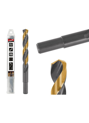 Золотисто-черное сверло по металлу, изготовленное из быстрорежущей стали 4341 HSS, покрыто покрытием TiN (нитрид титана). Сверло соответствует DIN 338. Цилиндрический патрон, подточенный, позволяет использовать сверло большего диаметра, чем диапазон сверлильного патрона. Сверло предназначено для выполнения сквозных и глухих отверстий. Они имеют два центральных лезвия, заточенных под углом 135°, и канавки, которые эффективно удаляют стружку в отверстие. Сверло с покрытием TiN предназначено специально для обработки трудно резаемых материалов. Применение покрытия TiN повышает жесткость сверла, ускоряет процесс резки и позволяет повысить качество обработанных элементов. Слой нитрида титана, уменьшая силу трения, уменьшает износ лезвия и тем самым продлевает срок службы сверла. Сверло было упаковано в пластиковый контейнер с отверстием для подвешивания на крючок. Характеристики продукта: сверло из быстрорежущей стали HHS 4341 покрытое покрытием TiN (нитрид титана) очень хорошо удаляет выкопанный материал благодаря полированной спирали 2-градусный наконечник, заточенный под углом 135° идеально отшлифованная режущая кромка. Технические характеристики: 14,00 мм Верх: 2 градуса, грунт под углом 135° Хвостовик: цилиндрический, подточенный