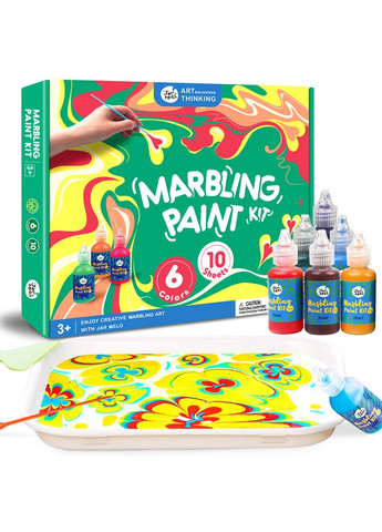 Рисование на воде – сплошное удовольствие и каждый раз новый и очень хороший результат! Если вы еще не пытались рисовать на воде, настоятельно рекомендуем! Этот набор – хит продаж и от процесса в восторге и дети и взрослые! В наборе: 12 бутылочек с разными цветами красок (16 мл в каждой). Бутылочки имеют специальные крышечки для аккуратного рытья краски. 1 баночка (15 г) из порошка каррагенана (естественный гелеобразователь), именно он делает из обычной воды волшебную. 10 листов бумаги формата A5; Специальный лоток, пластиковые палочки, мерная ложечка, пипетка и шпатель для рисования. Инструкция Набор упакован в красивую коробочку размером 30*23*4,5 см. Для детей в возрасте от 3 лет. Важно! Воду нужно приготовить заранее, лучше за 2-3 часа до рисования. Необходимо смешать 2 мерные ложки каррагенана и пол-литра воды. Лучше, если вода будет теплая, тогда комочки быстрее растворятся. Жидкость должна стать полностью однородной! После того как Вы перенесли рисунок на бумагу, можно смело добавлять краски в ту же жидкость и продолжать рисовать и так много раз! Краски и другие материалы не токсичны и безопасны для детей. Удовольствие и медитация! «Искусство облаков» – так называли эту технику в Персии и Турции в XV веке, широко применяя ее в переплетном деле. В Европе она достигла вершин совершенства в XVII веке, прежде всего, во Франции, где декоративная бумага для форзацев и крышек переплетов обрабатывалась марморированием масляной краской, клейстером с красителями. Процесс марморирования прост, в общих чертах можно описать так: капли краски капают на поверхность воды и разводят палочками или другими удобными инструментами в разные стороны, создавая красивые затейливые узоры. Затем декорируемый предмет на несколько секунд, прислоняется к поверхности воды, и поверхность предмета перенимает узор. Непосредственно процесс завораживает магией преобразований.
