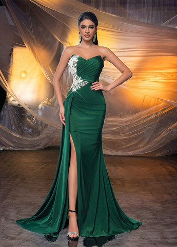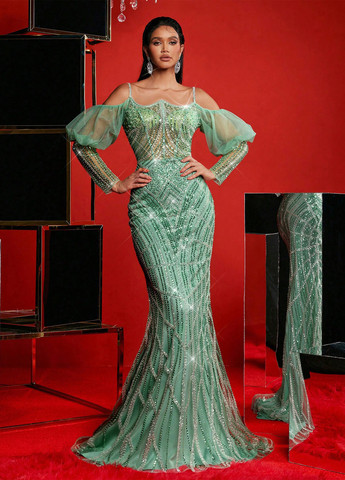 Элегантное вечернее платье Glamrae. Это изысканное платье имеет высокую талию, облегающий дизайн. Оно включает в себя V-образный вырез и тонкие бретели. Лиф искусно плиссирован и украшен ручной отделкой стразами. Подол в виде русалки и дизайн с открытой спиной обеспечивают поразительный силуэт. Это платье имеет надежную застежку-молнию и изготовлено из высокоэластичной ткани. В комплект входят несколько вариантов завязок для индивидуального стиля. Подходит для официальных мероприятий, таких как выпускные, свадьбы и вечеринки.