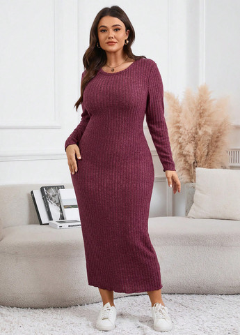 Это платье SHEIN VCAY предлагает облегающую посадку для рынка plus size. Оно предназначено для ношения осенью и зимой. Платье имеет конструкцию в рубчик и обычные рукава. Ткань средней эластичности. Оно имеет карандашный подол и круглый вырез. Талия спроектирована с естественной средней линией талии.