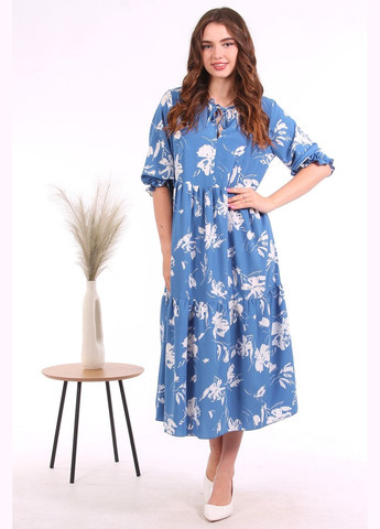 Платье летнее женское без застежки, вырез горловины - круглый , сезон - летний, стиль - повседневный (casual), цвет - джинсовый, принт - мак , цвет добавочный - белый , ткань - софт , состав - 65% полиэстер, 35% вискоза, , силуэт - свободные , длина модели - миди длина рукава - три четверти.
