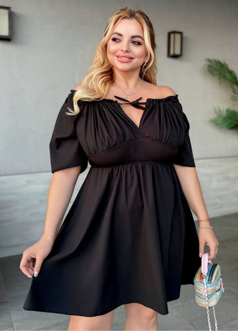 Короткие рукава на эластичной резинке создают эффект спущенных плеч и придают образу романтические ноты. Верх платья оформлен эластичной вставкой по лифу с декоративной завязкой.