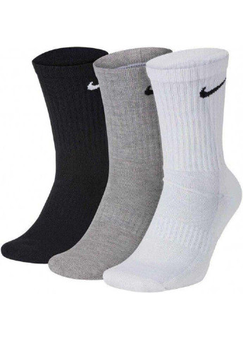 Носки Nike Everyday Lightweight Crew 3-pack black/gray/white — SX7676-901 пользуются популярностью у профессиональных спортсменов. Эти носки сделаны из мягкого износостойкого хлопка и синтетических нитей. Носки имеют анатомический крой, а специальный плоский шов в носочной зоне препятствует натиранию. Удвоенное плетение нитей надежно поддержит свод стопы во время движения. Удобная резинка не пережимает ногу и препятствует сползанию носков. Носки не деформируются после стирки и являются прочными и износостойкими. В упаковке три пары носков. Известнейший бренд в мире спортивной моды известен в первую очередь обувью, которая разрабатывается с учетом особенностей каждого вида спорта и движений тела. «Найк» – это обувь, одежда и разнообразные аксессуары для тех, кто поддерживает свое тело в форме и не идет на компромисс между комфортом и красотой.
